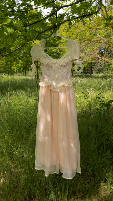 Robe délicate, blanche & pêche.